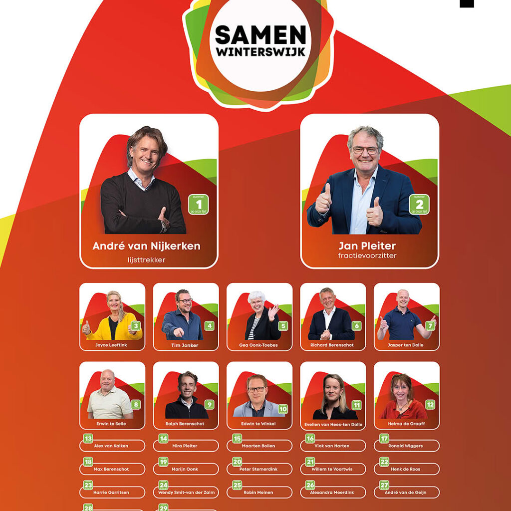 Ook leden die minder betrokken zijn geweest bij dit traject nemen we graag mee in waar SAMEN Winterswijk voor staat. Daarnaast zullen we promotiemateriaal (posters) uitdelen, zodat we in de laatste week voor de verkiezingen samen nog nét wat extra zichtbaar kunnen zijn.